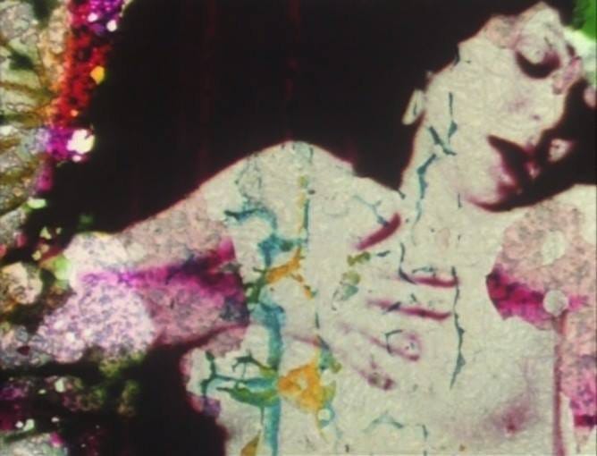The Afterlight belongs to an expansive genealogy of moving image works that foreground the materiality of celluloid by making the effects of time — especially decay — aesthetic experiences. Among the most well-known of such works are Nam June Paik’s Zen for Film (1962-64), a projection of a loop of transparent film leader on which the accumulated dust, dirt and damage becomes an integral part of the work itself; Peggy Ahwesh’s The Color of Love (1994), a slowed optical reprint of a kaleidoscopically degraded 8mm porn movie; and the found footage films of Bill Morrison, most notably his cine-apocalyptic feature Decasia (2002), consisting of optically reshot nitrate film in various states of chemical decomposition.