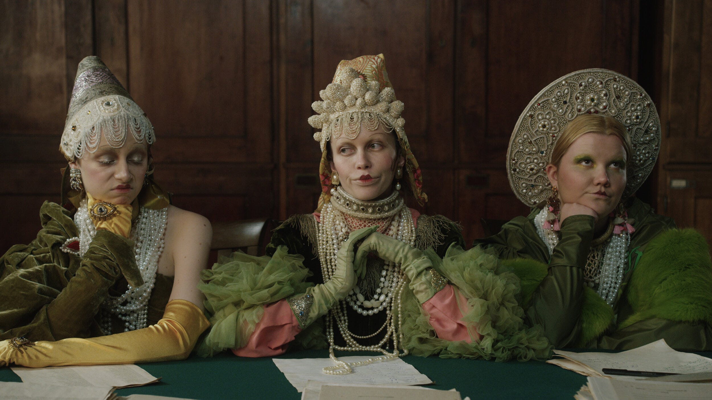 A feminist spoof of costume dramas and the cinderella narrative, Uldus Bakhtiozina’s Tzarevna Scaling takes the viewer on a delightfully weird journey through Russian culture. The film follows a fish van attendant named Polina (Alina Korol) who, after drinking a herbal tea given to her by one of her customers, finds herself embarking on a dreamlike journey into the world of Tzarevens, the female princesses of Russian folk tales. Guided by a walkie-talkie-wielding fairy-godmother, Polina attempts to find her “plot line” on a mission that sees her encounter everything from men in goat costumes dancing to Belarusian rap music to women with swans on their head arm wrestling by a swimming pool. Bakhtiozina draws upon an abundance of mythological and historical figures and symbols in her structural analyses of folklore. From frog princes and poisonous apples to Soviet interiors and contemporary pop music, she explores how the meaning behind traditional folk tales continues to shape Russian culture and perpetuate patriarchal ideologies of gender and beauty.