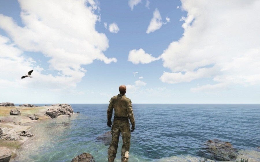 Towards the end of Antioine Chapon’s latest film, about the French and American military’s use of video game scenarios to treat post-traumatic stress disorder, a group of digitally rendered soldiers find themselves marooned on a desert island. Originally designed to fight in a CGI simulation, these featureless avatars find themselves stripped of their uniforms and weapons, and left to wander a virtual beach. It’s difficult not to compare them to the topless Legionnaires in Claire Denis’s Beau Travail, who circle one another in a balletic choreography before lunging into a homoerotic embrace. However, here the eroticism of the rhythmic patterns of those training exercises is replaced with chaos and confusion, as the men shout random orders to each other as they roam this digital terrain. The conflicts of the future might be fought online, but it seems that the aestheticisation of masculinity will remain an intrinsic element of modern warfare.