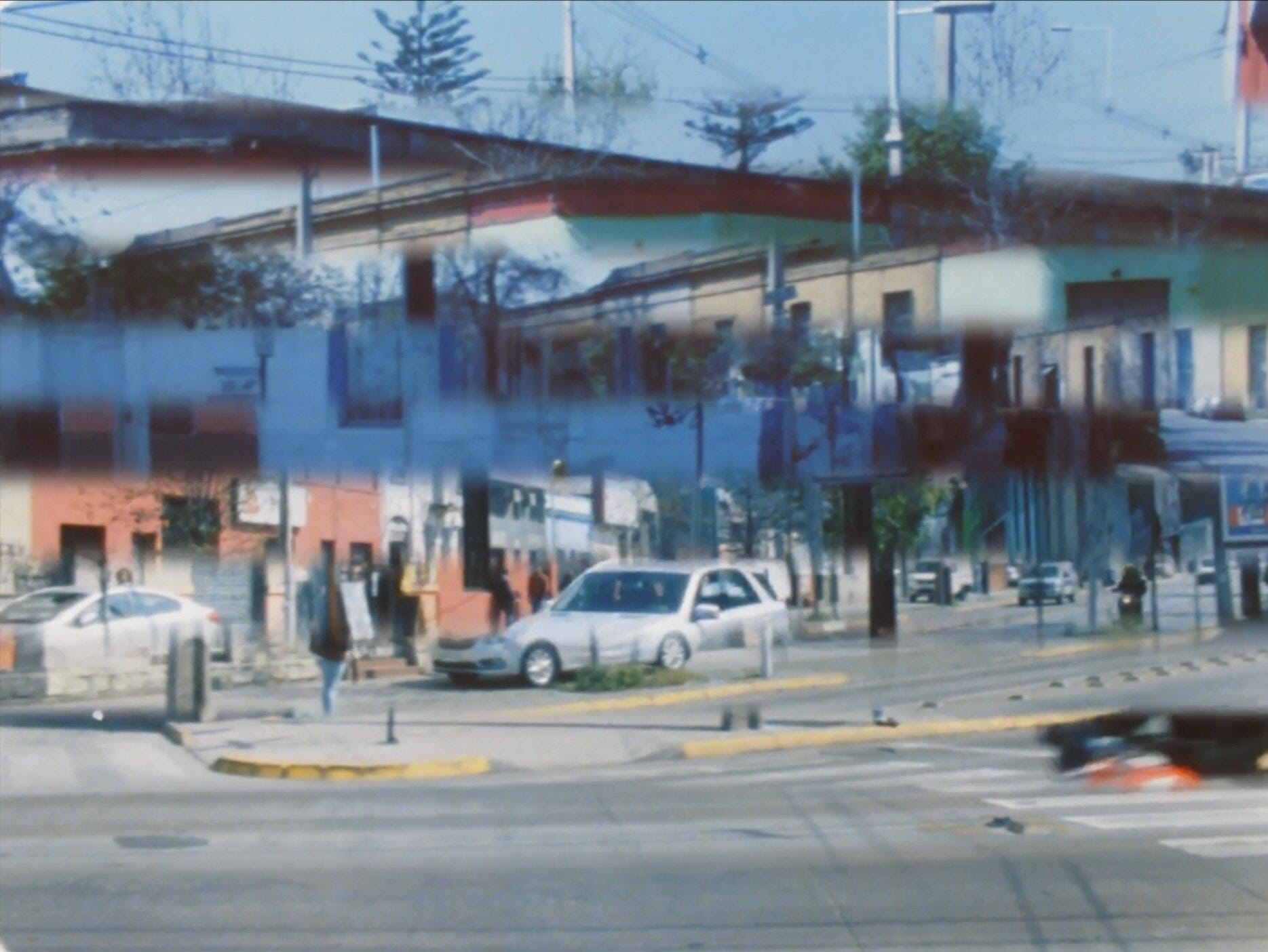 In a similar vein to their previous film, China Not China, Richard Tuohy and Dianna Barrie’s Valpi takes a formal approach to conjuring the essence of a place. The Chilean city of Valparaiso sits on the edge of the South American continent, in a position that places it in perilous proximity to a boundary between tectonic plates. In the film, the image is sliced horizontally into a dozen or so strips which pan and move at different times, creating the effect of buildings, roads, cars, and people sliding, layer by layer, across the screen. The distinction between these strips is emphasized by the Pulfrich effect (achieved by crookedly wearing sunglasses over just one eye) which creates a stereoscopic illusion, so the layers seem to slide towards or away from you. The consequence is an experience of a place that is once immersive and engulfing but also destabilising and abstracted. Typical street sounds feel like our memory filling in the gaps of a city we can’t quite recall.