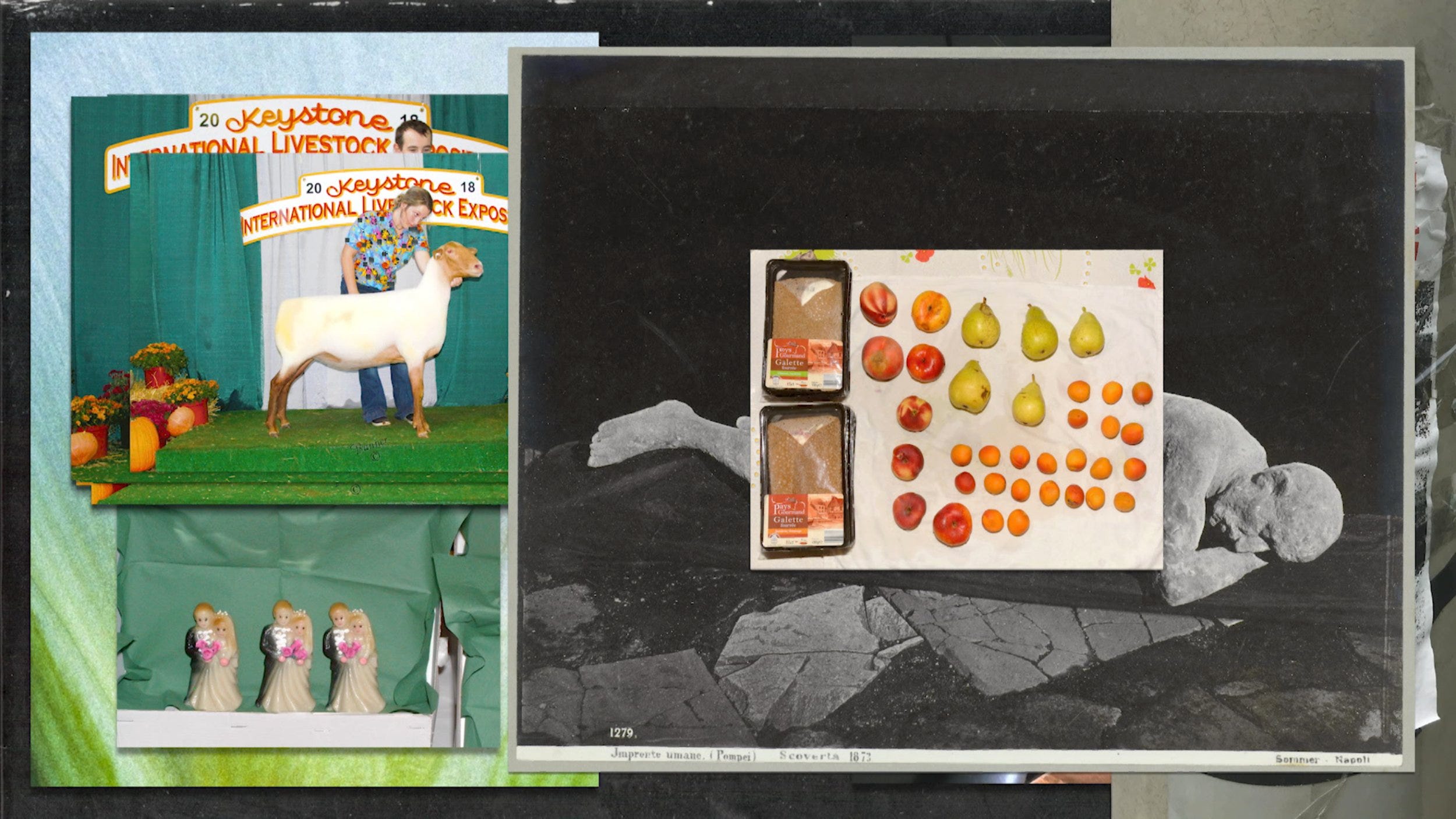 DP: I quite like adopting the aesthetics and tropes of certain formats. Like in my film If you’re watching this now then this is for you (2022), which I made with Sally Beets who did the writing and voiceover, she made a note of all these TikTok video titles and rearranged them to form a poem that gives a sense of the anxiety those kind of apps can induce. So, that one is a TikTok-inspired format, and is one minute long. Going further back, my film Content Anxiety (2019) was more of a take on the YouTube format. That work has quite a few disparate, collaged images overlapping in the centre of the frame and then each one of these YouTuber voices that you can hear has their own looping animated icon in the corner of the screen, like branding. That film is a lot about self-branding and the worries people have around their relevance online, so everyone had their own little brand symbol which reflected what they were talking about. Back to the question, though; I think increasingly there’s quite a fluidity between the formats I work in. When I have a solo show, I like making these immersive ‘image worlds’. So, in my show Factory Reset in 2022, some of the original images from my archive were shown as stickers on the wall, but then appeared in the collages and then would also appear in video work. I quite like these recurring motifs across different formats, where the works come together to form a system of interrelations or linkages, for the viewer to bounce between.